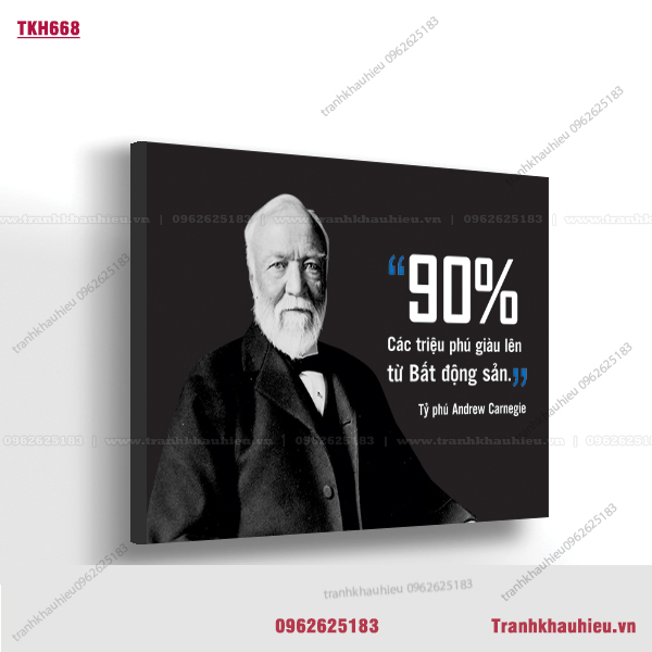 Tranh khẩu hiệu ”90% các triệu phú giàu lên nhờ bất động sản – Tỷ phú Andrew Carnegie” tạo động lực làm việc cực hiệu quả dành cho văn phòng bất động sản, sales, bán hàng, kinh doanh, trang trí văn phòng, truyền cảm hứng làm việc.