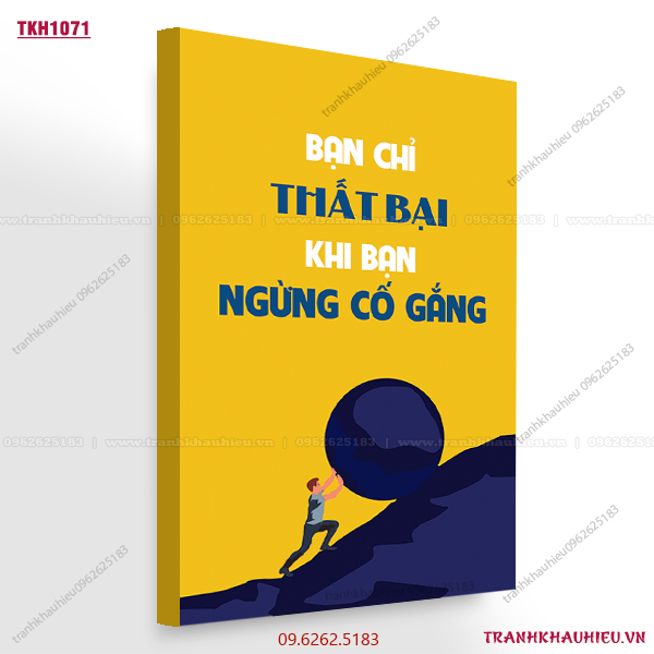 Tranh khẩu hiệu ”Bạn chỉ thất bại khi bạn ngừng cố gắng” tạo động lực làm việc cực hiệu quả dành cho văn phòng bất động sản, sales, bán hàng, kinh doanh, trang trí văn phòng, truyền cảm hứng làm việc.