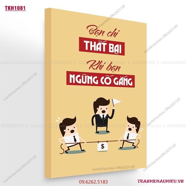 Tranh khẩu hiệu ”Bạn chỉ thất bại khi bạn ngừng cố gắng” tạo động lực làm việc cực hiệu quả dành cho văn phòng bất động sản, sales, bán hàng, kinh doanh, trang trí văn phòng, truyền cảm hứng làm việc.