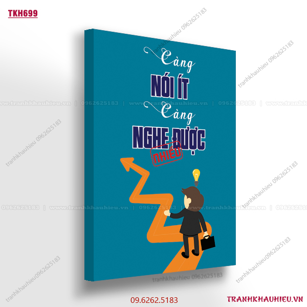 Tranh khẩu hiệu ”Càng nói ít càng nghe được nhiều” tạo động lực làm việc cực hiệu quả dành cho văn phòng bất động sản, sales, bán hàng, kinh doanh, trang trí văn phòng, truyền cảm hứng làm việc.