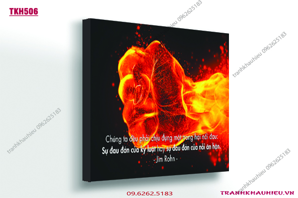 TRANH KHẨU HIỆU – Sau khi được Designer thiết kế mẫu tranh khẩu hiệu – in mực dầu nhập khẩu trên nền vải canvas cao cấp nhập khẩu bởi máy móc, thiết bị Nhật Bản được sản xuất đúng quy trình . Sau đó căng tràn trên khung gỗ mang lại sự tinh tế, hiện đại, đảm bảo chất lượng, hình ảnh sống động, độ tương phản cao, độ bền lên tới 2-3 năm, đảm bảo thẩm mỹ hoàn hảo bởi thợ làm tranh có kinh nghiệm 10 năm.