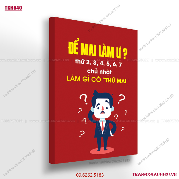 Tranh khẩu hiệu ”Để mai làm ư? Thứ 2,3,4,5,6,7 chủ nhật làm gì có thứ mai” tạo động lực làm việc cực hiệu quả dành cho văn phòng bất động sản, sales, bán hàng, kinh doanh, trang trí văn phòng, truyền cảm hứng làm việc.