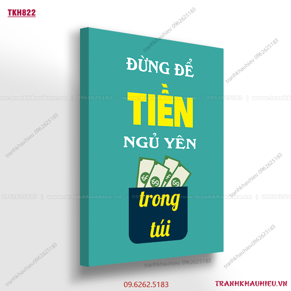 Tranh khẩu hiệu ”Đừng để tiền ngủ yên trong túi” tạo động lực làm việc cực hiệu quả dành cho văn phòng bất động sản, sales, bán hàng, kinh doanh, trang trí văn phòng, truyền cảm hứng làm việc.