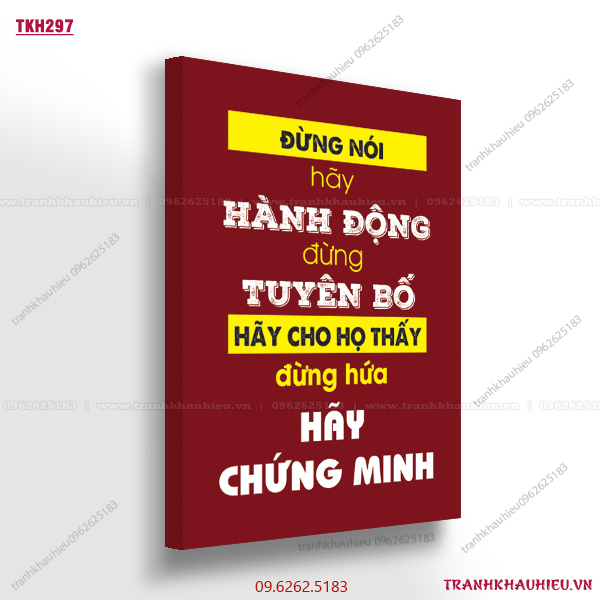 Tranh khẩu hiệu ”Đừng nói hãy hành động, đừng tuyên bố cho họ thấy, đừng hứa hãy chứng minh” tạo động lực làm việc cực hiệu quả dành cho văn phòng bất động sản, sales, bán hàng, kinh doanh, trang trí văn phòng, truyền cảm hứng làm việc.