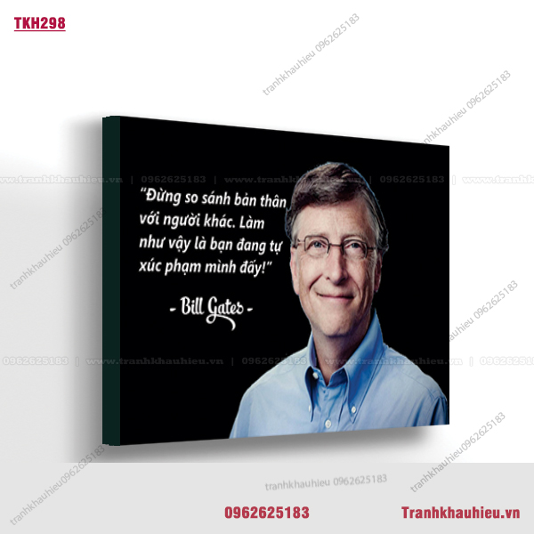 Tranh khẩu hiệu ”Đừng tự so sánh bản thân với người khác, như vậy là bạn đang tự xúc phạm mình đấy – Bill Gates” tạo động lực làm việc cực hiệu quả dành cho văn phòng bất động sản, sales, bán hàng, kinh doanh, trang trí văn phòng, truyền cảm hứng làm việc.