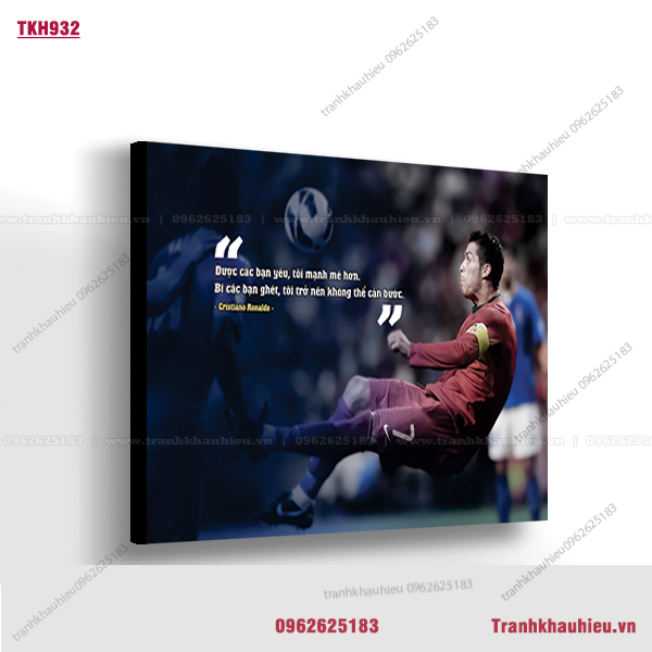 Tranh khẩu hiệu ”Được các bạn yêu tôi mạnh mẽ hơn. Bị các bạn ghét tôi trở nên không thể cản bước – Ronaldo” tạo động lực làm việc cực hiệu quả dành cho văn phòng bất động sản, sales, bán hàng, kinh doanh, trang trí văn phòng, truyền cảm hứng làm việc.