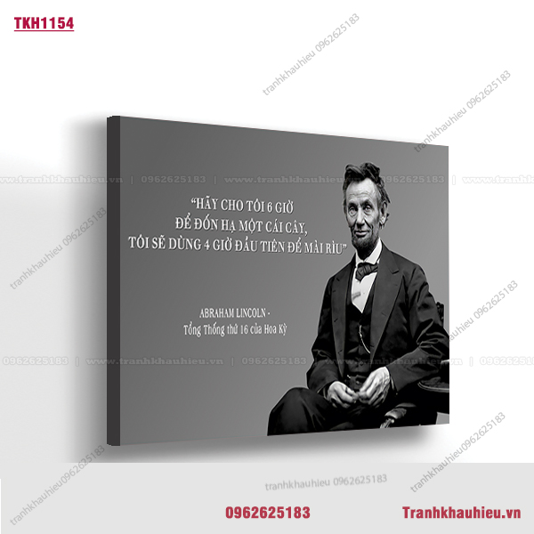 Tranh khẩu hiệu ”Hãy cho tôi 6h để đốn hạ một cái cây, tôi sẽ dùng 4h đầu tiên để mài rìu ” tạo động lực làm việc cực hiệu quả dành cho văn phòng bất động sản, sales, bán hàng, kinh doanh, trang trí văn phòng, truyền cảm hứng làm việc.