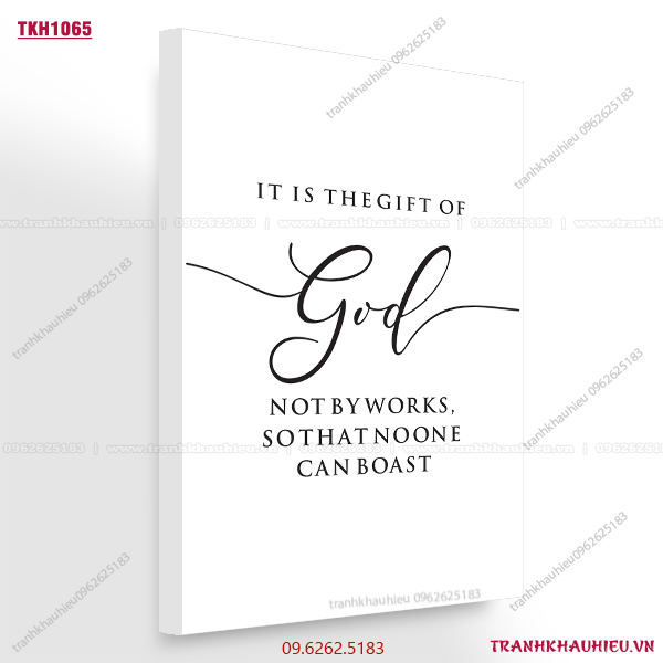 Tranh khẩu hiệu ”It is the gift of God not by works, so that no one can boast” tạo động lực làm việc cực hiệu quả dành cho văn phòng bất động sản, sales, bán hàng, kinh doanh, trang trí văn phòng, truyền cảm hứng làm việc.