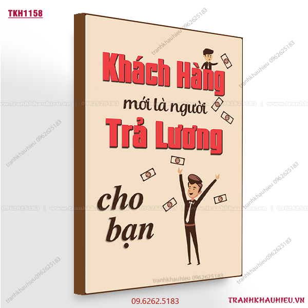 Tranh khẩu hiệu ”Khách hàng mới là người trả lương cho bạn” tạo động lực làm việc cực hiệu quả dành cho văn phòng bất động sản, sales, bán hàng, kinh doanh, trang trí văn phòng, truyền cảm hứng làm việc.