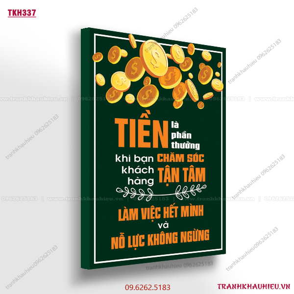 Tranh khẩu hiệu ”Khi bạn chăm sóc khách hàng tận tâm, làm việc hết mình và nỗ lực không ngừng- tiền là phần thưởng” tạo động lực làm việc cực hiệu quả dành cho văn phòng bất động sản, sales, bán hàng, kinh doanh, trang trí văn phòng, truyền cảm hứng làm việc.