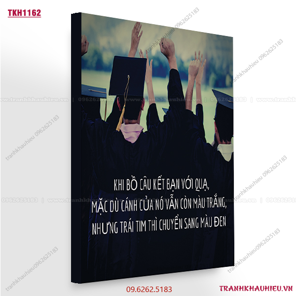 Tranh khẩu hiệu ”Khi bồ câu kết bạn với quạ, mặc dù cánh của nó vẫn còn màu trắng, nhưng trái tim thì chuyển sang màu đen” tạo động lực làm việc cực hiệu quả dành cho văn phòng bất động sản, sales, bán hàng, kinh doanh, trang trí văn phòng, truyền cảm hứng làm việc.