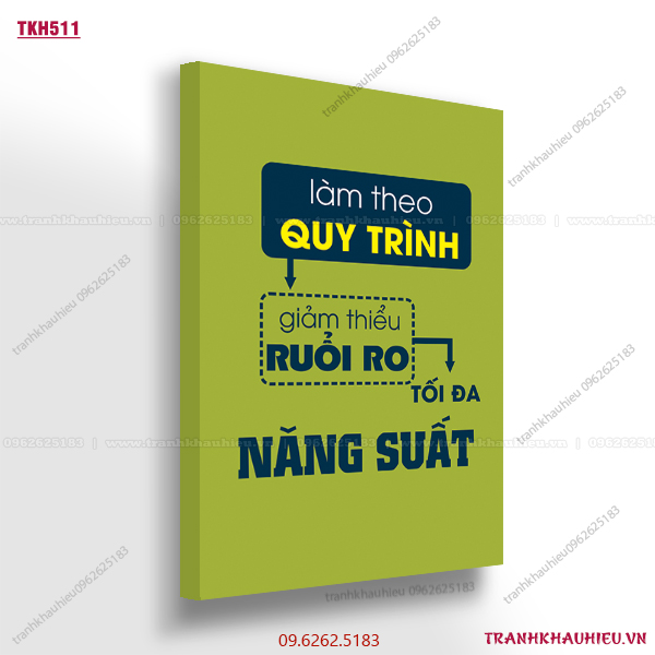 Tranh khẩu hiệu ”Làm theo quy trình, giảm thiểu rủi ro, tối đa năng suất” tạo động lực làm việc cực hiệu quả dành cho văn phòng bất động sản, sales, bán hàng, kinh doanh, trang trí văn phòng, truyền cảm hứng làm việc.