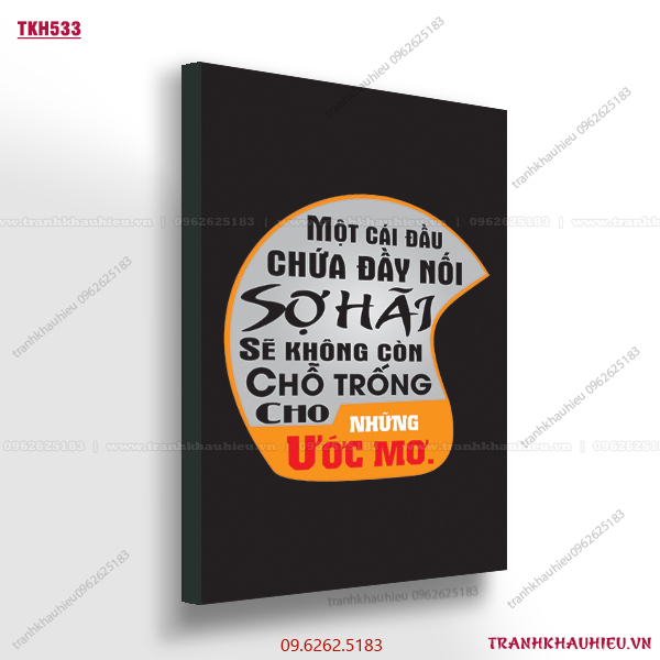Tranh khẩu hiệu ”Một cái đầu chứa đầy nỗi sợ hãi sẽ không còn chỗ trống cho những ước mơ” tạo động lực làm việc cực hiệu quả dành cho văn phòng bất động sản, sales, bán hàng, kinh doanh, trang trí văn phòng, truyền cảm hứng làm việc.
