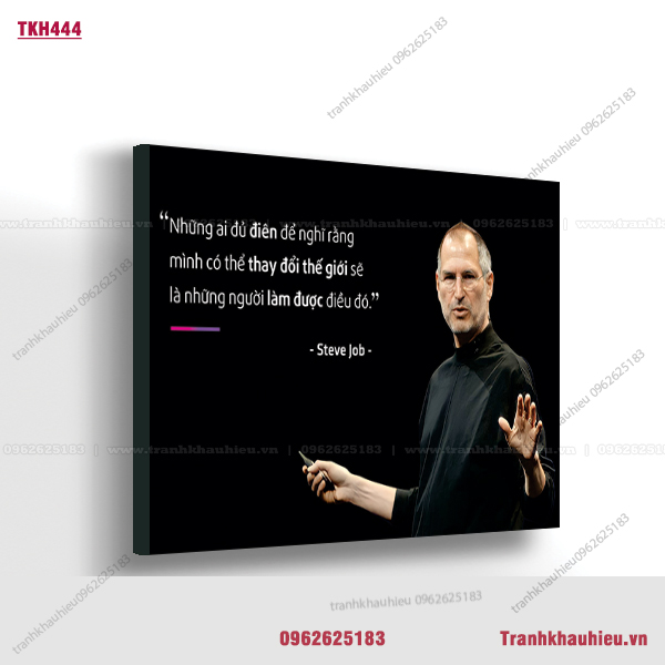Tranh khẩu hiệu ”Những ai đủ điên để nghĩ rằng mình có thể thay đổi thế giới sẽ làm được điều đó – Steve Jobs” tạo động lực làm việc cực hiệu quả dành cho văn phòng bất động sản, sales, bán hàng, kinh doanh, trang trí văn phòng, truyền cảm hứng làm việc.