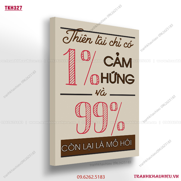 Tranh khẩu hiệu ”Thiên tài chỉ có 1% cảm hứng, 99% còn lại là mồ hôi nước mắt” tạo động lực làm việc cực hiệu quả dành cho văn phòng bất động sản, sales, bán hàng, kinh doanh, trang trí văn phòng, truyền cảm hứng làm việc.