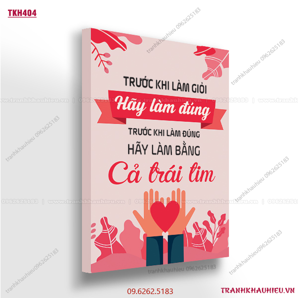 Tranh khẩu hiệu ”Trước khi làm giỏi hãy làm đúng, trước khi làm đúng hãy làm bằng cả trái tim” tạo động lực làm việc cực hiệu quả dành cho văn phòng bất động sản, sales, bán hàng, kinh doanh, trang trí văn phòng, truyền cảm hứng làm việc.