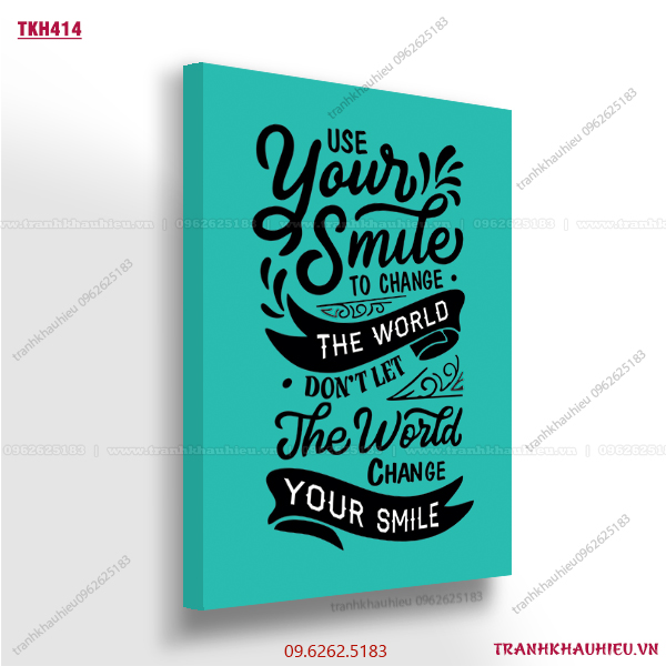 Tranh khẩu hiệu ”Use your smile to change the word” tạo động lực làm việc cực hiệu quả dành cho văn phòng bất động sản, sales, bán hàng, kinh doanh, trang trí văn phòng, truyền cảm hứng làm việc.
